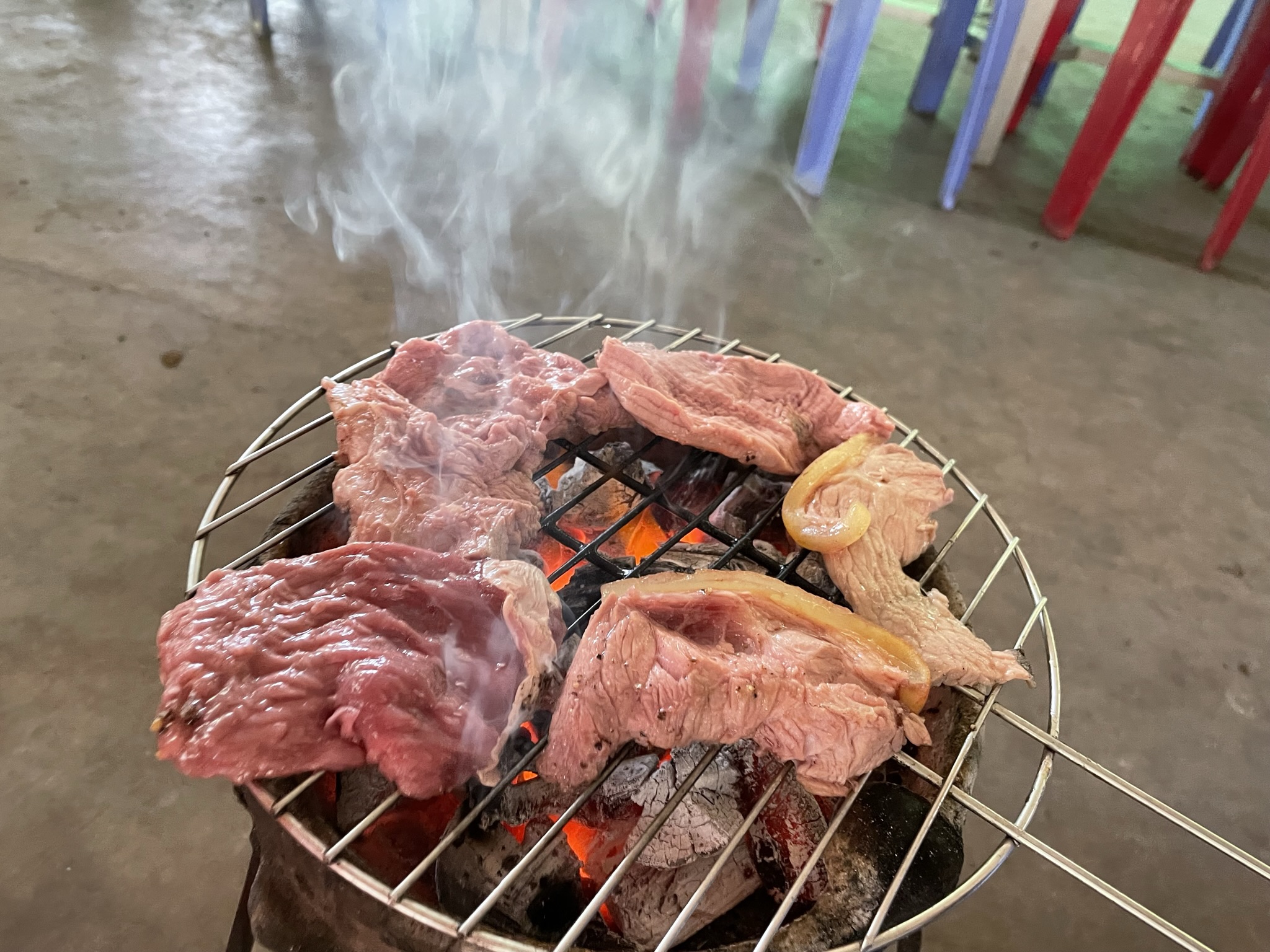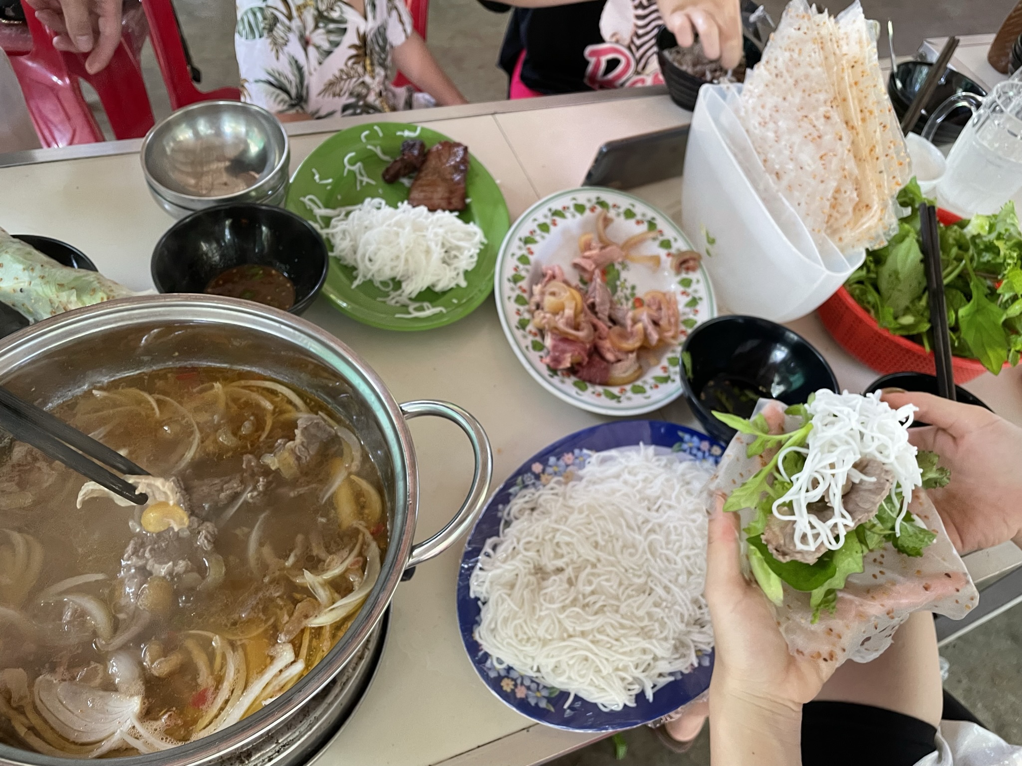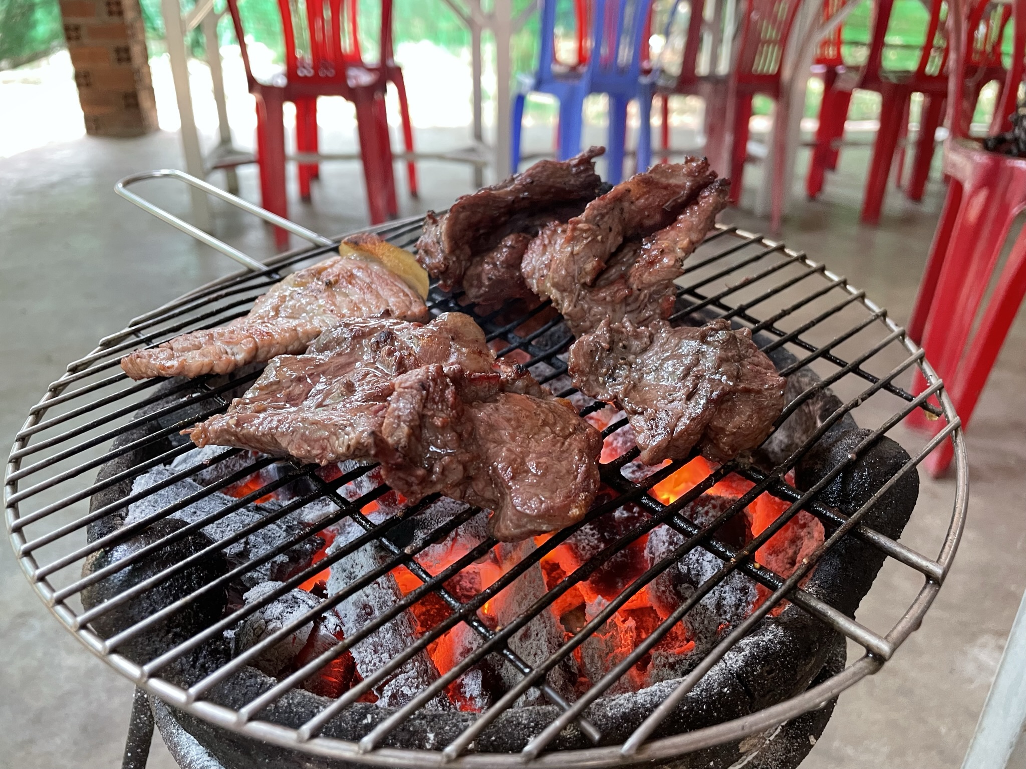 Càng tuyệt hơn, tại quán bò nóng đảo Phú Quý, thực khách tự chọn cho mình những thớ thịt tùy thích sau đó được quán chế biến tại chỗ hoặc khách có thể tự tay nướng những miếng thịt cắt sẵn trên những bếp than hồng mùi hương lan tỏa, gắp ăn nóng hổi thơm thơm béo ngậy tan dần trong miệng để lại cảm xúc khó quên muốn ăn tiếp chẳng thể dừng.