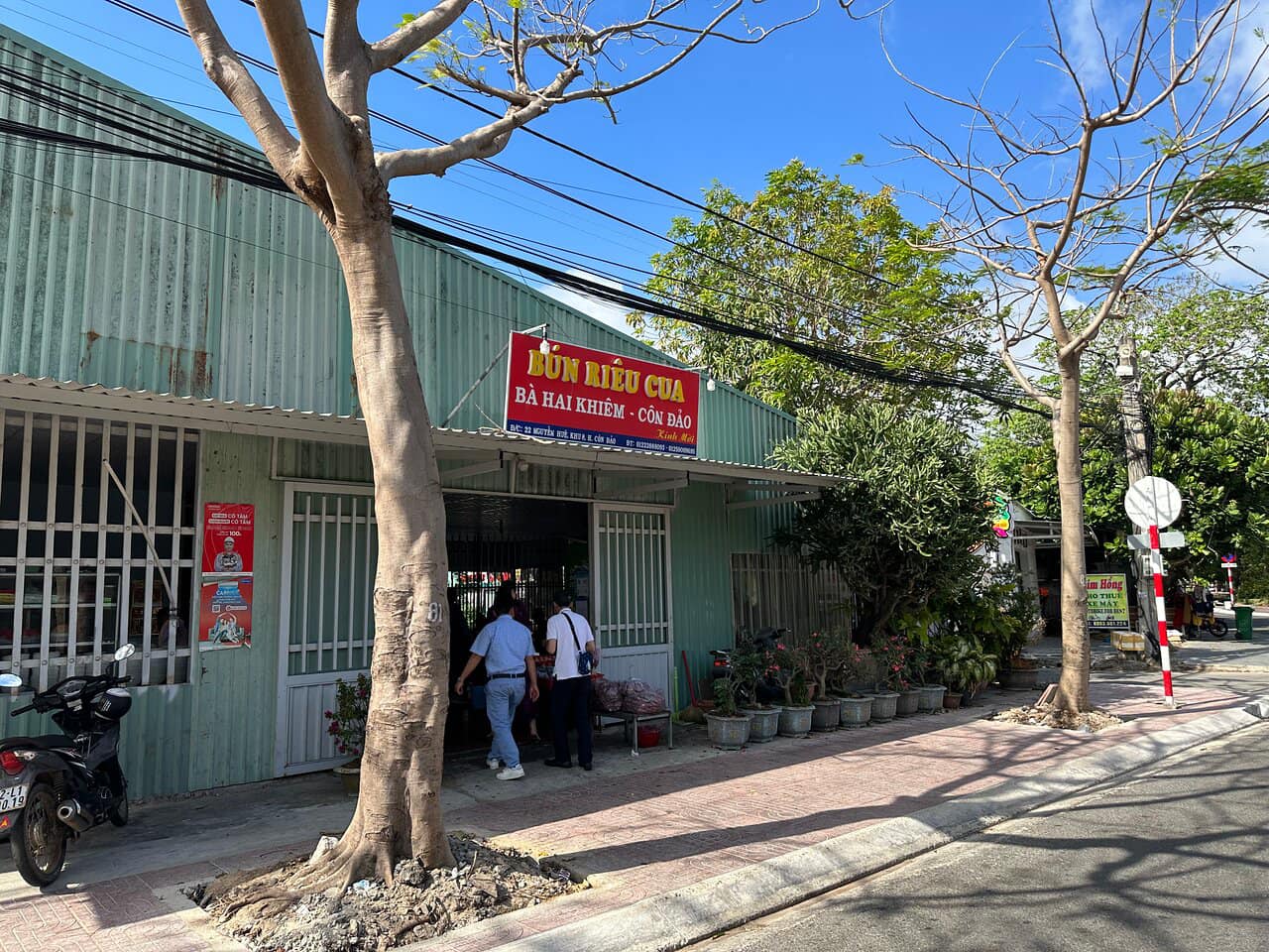 Trước đây. trên đảo chỉ có một quán bún riêu cua nên hầu hết và du khách đến Côn Đảo hỏi bất kỳ người dân địa phương nào, họ sẽ chỉ bạn đến quán bún riêu của bà Hai Khiêm nằm khiêm tốn bên góc đường. Hiện nay, tuy đã có thêm nhiều quán bán nhưng nơi đây vẫn lưu giữ nhiều hương vị khó quên đối với nhiều người.