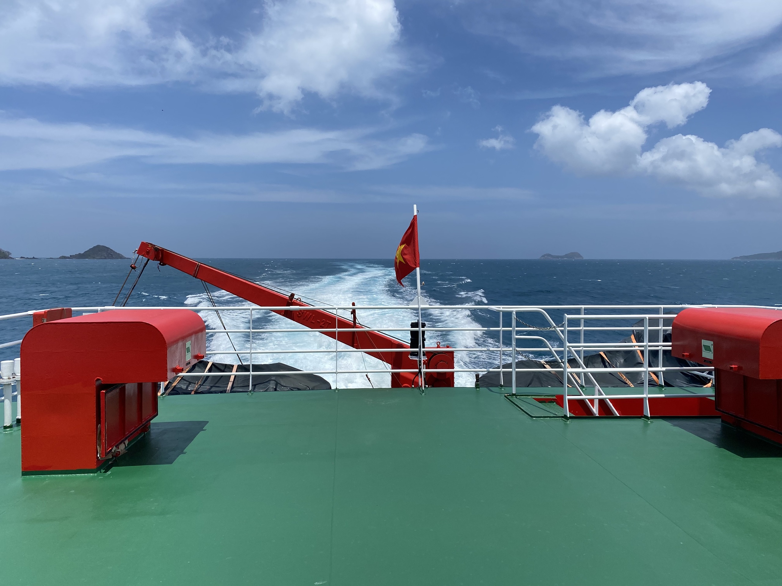 Lên đây, chúng tôi được chiêm ngưỡng toàn cảnh thị trấn Côn Đảo giữa biển trời.