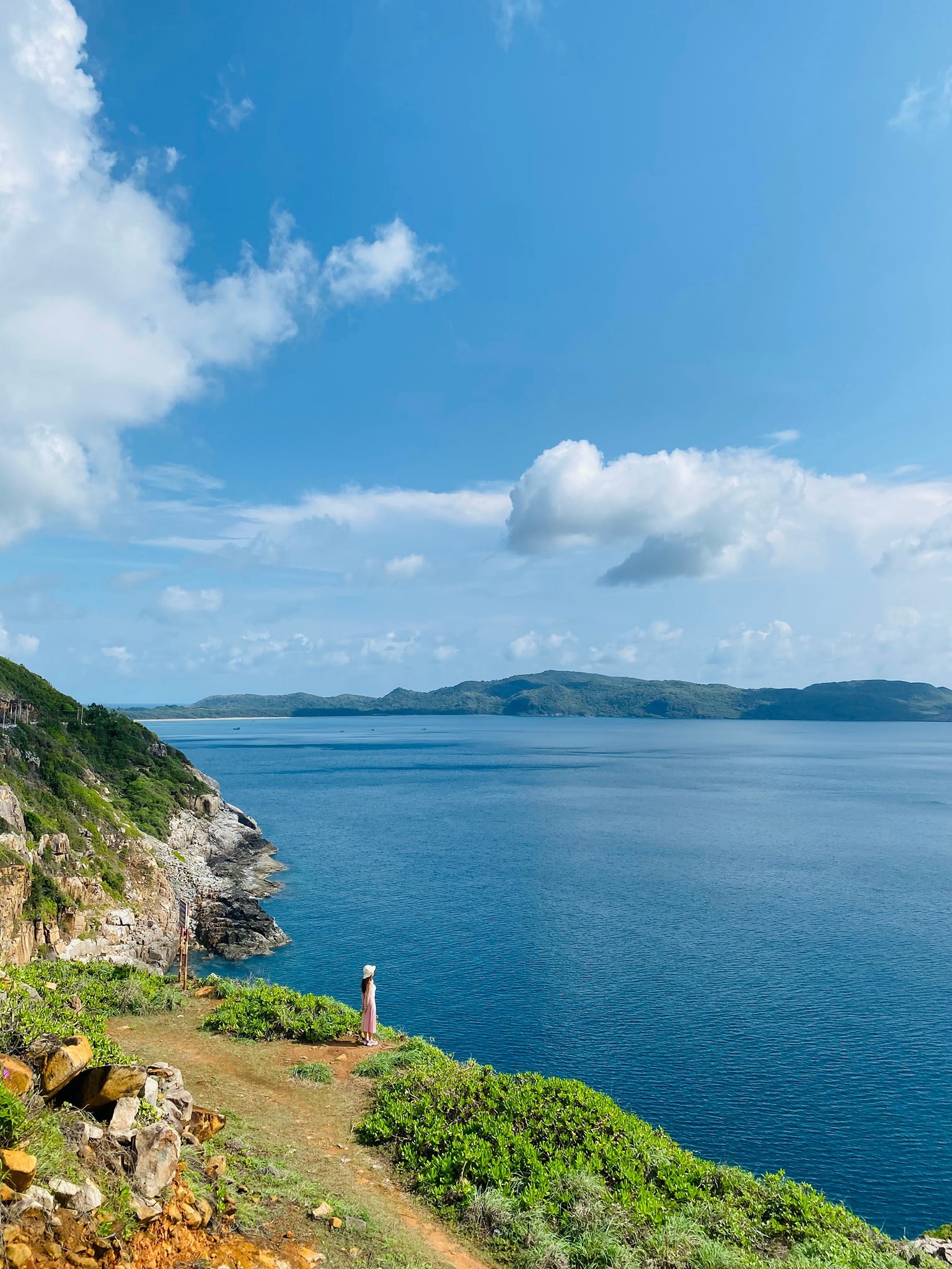 Ngồi trên bờ đá, đón luồng gió mát lành và nhìn mặt trời từ từ hé lộ trên mặt biển là khoảnh khắc ai cũng muốn lưu giữ. Khi nắng sớm phủ vàng lên những mũi đá, cả khung cảnh trở nên kỳ vĩ và tráng lệ hơn bao giờ hết.