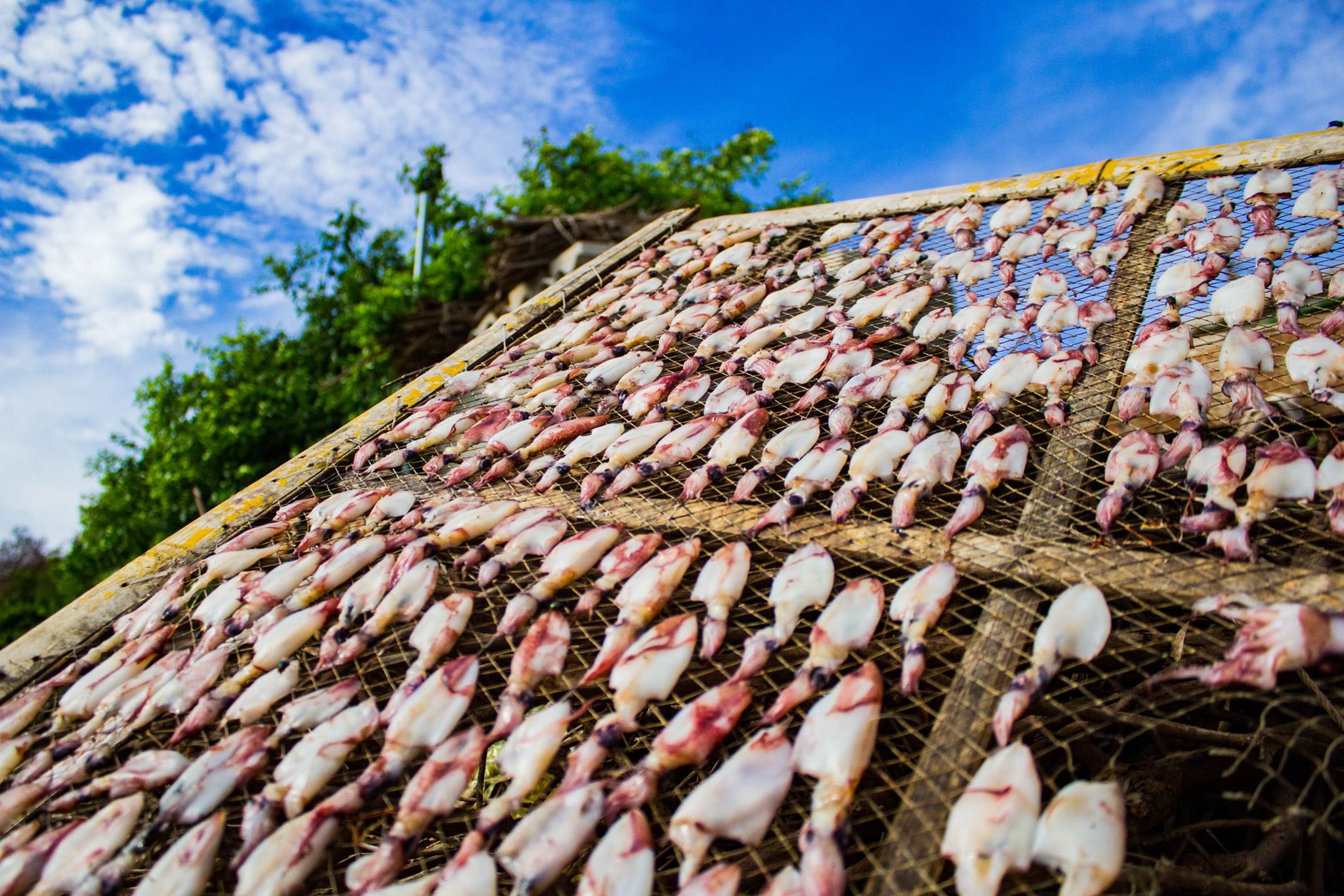 Ở xứ đảo này, đứng ở cầu tàu gặp mực lượn lờ bên mép biển, đi vào làng mực một nắng, mực muối phơi lềnh khênh, vào kho lạnh thấy mực cấp đông nằm xếp lớp, bếp ăn đang đỏ lửa với bữa cháo mực chuẩn bị đãi khách phương xa…, tôi định bụng phải ghim thêm cái tên “đảo mực” cho xứ cù lao Thu, cù lao Khoai Xứ này nữa cho đủ bộ.