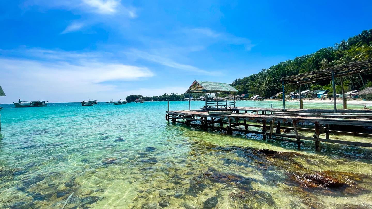 Bãi Chướng được nhiều du khách truyền tai nhau là bãi biển đẹp nhất đảo, với triền cát trắng mịn trải dài, nước biển xanh ngọc bích và không gian khoáng đạt.