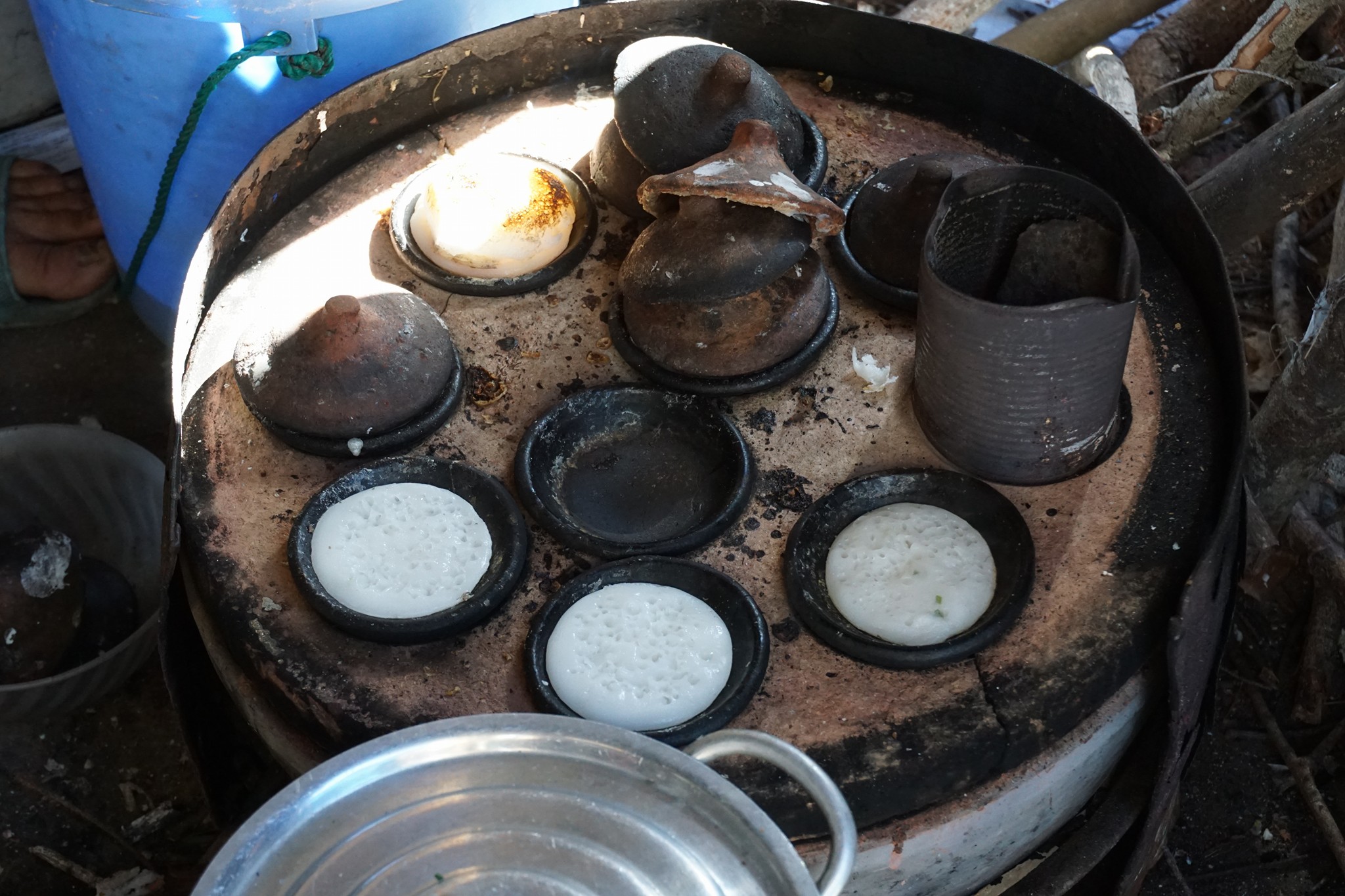Ngay từ thời kỳ đầu xây dựng huyện đảo, đa số người dân địa phương đều phải tự cung, tự cấp và tự sản xuất các trang thiết bị nhà bếp, trong đó có khuôn đất để đổ bánh căn. Và đến nay, món bánh căn ngon đúng điệu phải được đổ bằng khuôn đất, đó là dạng lò đất nung, mặt trên là mâm tròn với nhiều lỗ tròn vừa đủ để đặt khuôn bánh nhỏ, hình tròn lên trên. Đây chính là những lỗ thông hơi để hơi lửa có thể bốc lên làm chín bánh.