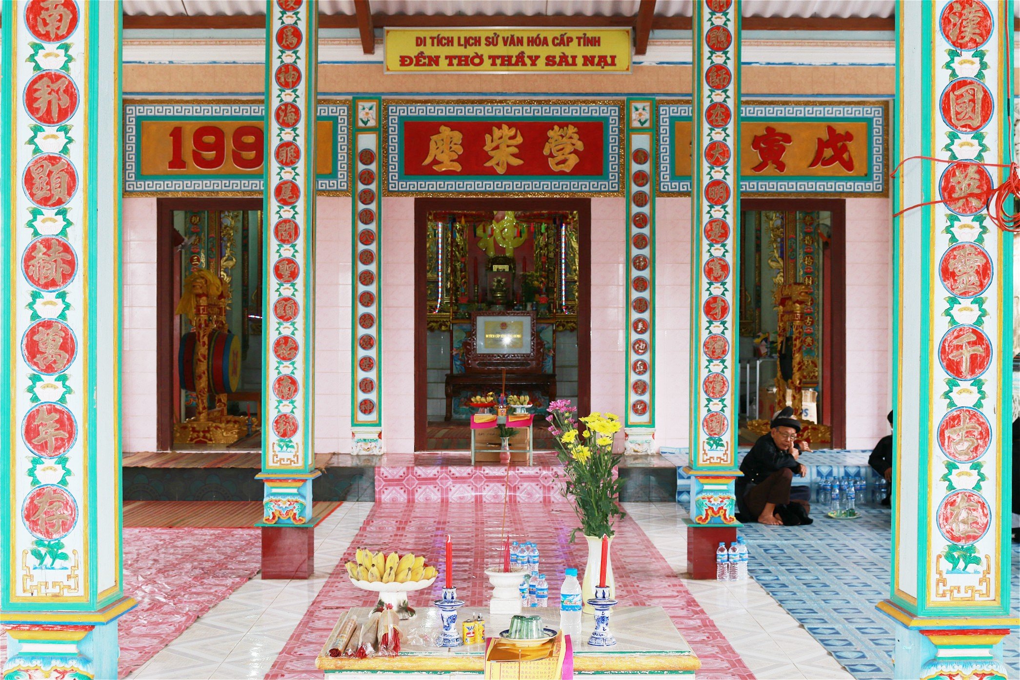 Một hương án được lập với đầy đủ lễ vật, sau khi khấn xong, chú bé dứng dậy ôm gốc cây duối nhổ lên và vác đi nơi khác. Một ngôi tín ngưỡng được dựng lên bằng tranh tre, vách đất. Sau nhiều lần trung tu, dinh thờ thầy Nại mới khang trang như ngày nay. Với những giá trị văn hóa vật thể và phi vật thể tiêu biểu của địa phương, ngày 7/9/2010, UBND tỉnh Bình Thuận đã công nhận Đền thờ thầy Sài Nại là Di tích lịch sử – văn hóa cấp tỉnh theo Quyết định số 1993/QĐ-UBND.