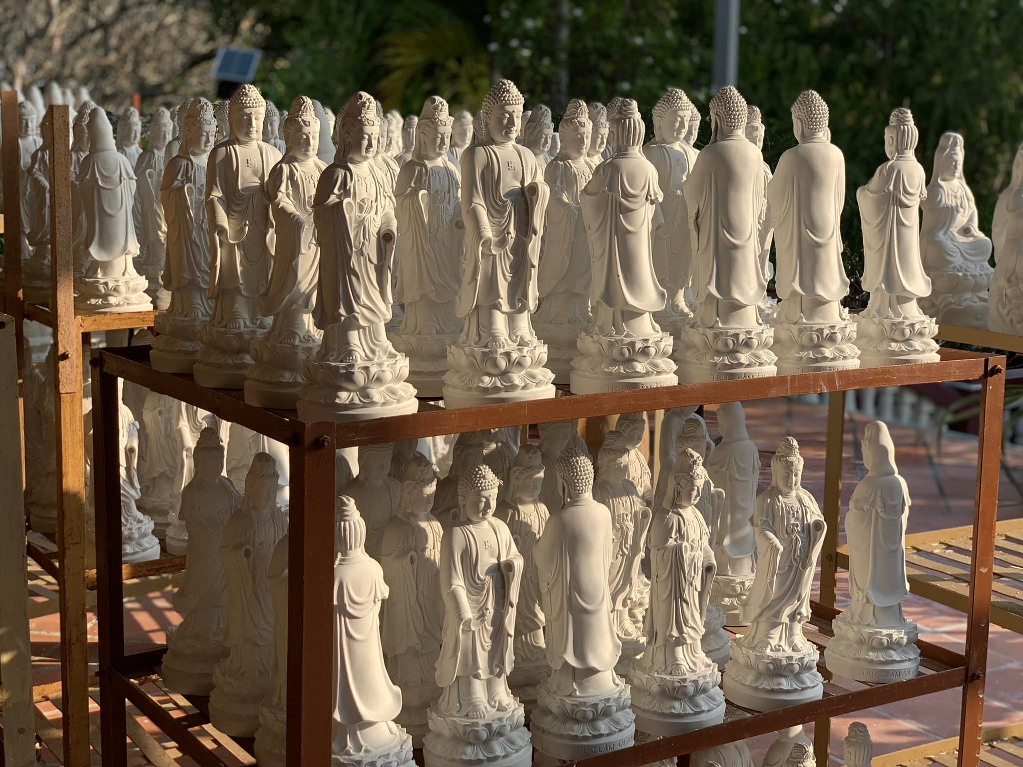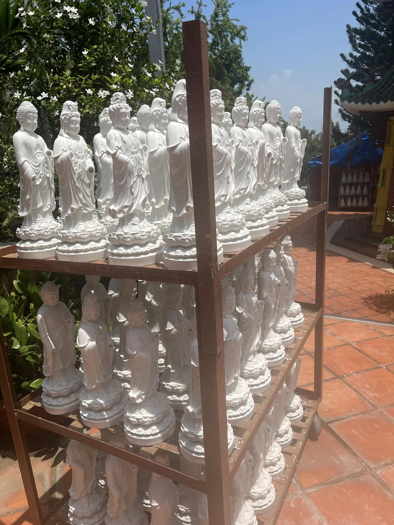 Hình ảnh những hàng tượng trắng muốt xếp ngay ngắn dưới nắng sân chùa tạo nên một khung cảnh vừa mộc mạc, vừa thiêng liêng, để lại ấn tượng khó quên với bất kỳ ai lần đầu đặt chân tới.