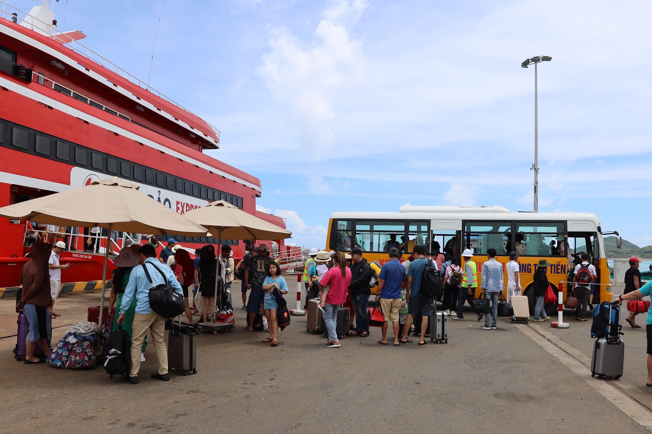 Khi bạn cập đến cảng Bến Đầm sẽ di chuyển vào trung tâm thị trấn Côn Đảo, quãng đường di chuyển mất khoảng 12km. Bạn có thể đi taxi hoặc đi xe bus chuyên dụng của hãng tàu cao tốc này, nhưng lưu ý thêm là phải đặt vé trước nhé, một phương tiện cũng phổ thông và dân dã hơn đó là xe lam, nếu bạn muốn thử trải nghiệm gần gũi với thiên nhiên thì có thể lựa chọn phương tiện này.