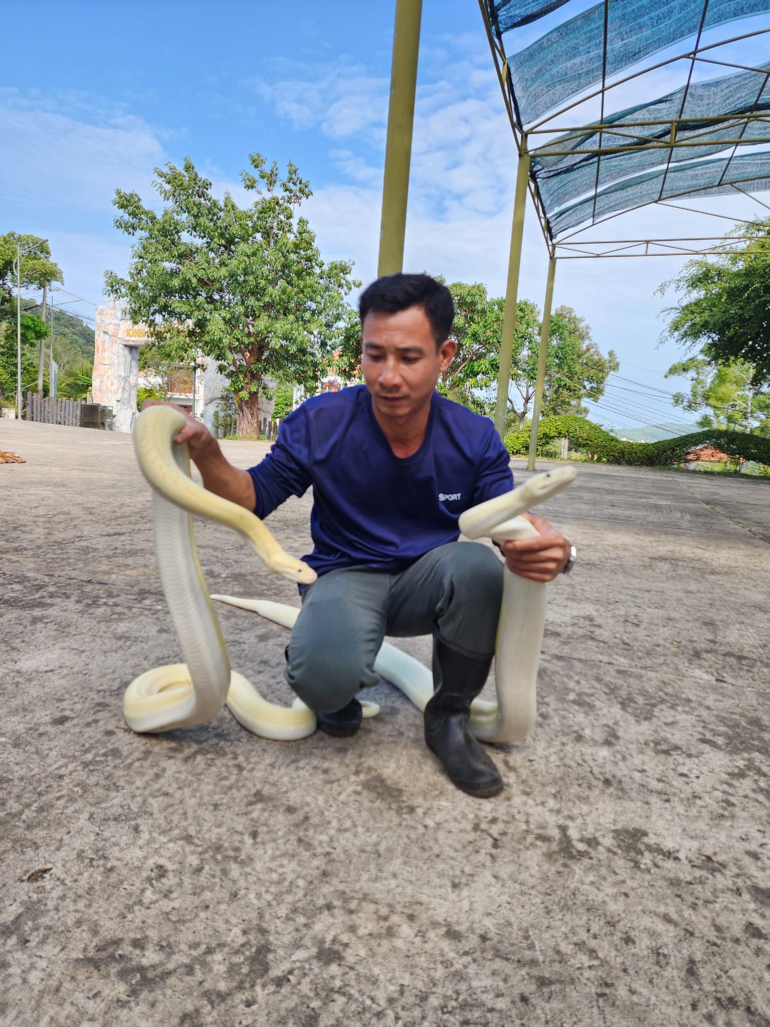 Visitors to Dong Tam Snake Farm 2 can enjoy a variety of eye-opening and interactive activities. They can take photos with gentle, non-venomous pythons; observe the process of caring for rare snake species; learn to distinguish between venomous and non-venomous snakes; and watch technicians demonstrate venom extraction—a highly precise and specialized procedure. Guests also gain valuable insight into the importance of preserving snake genetics for biomedical research.