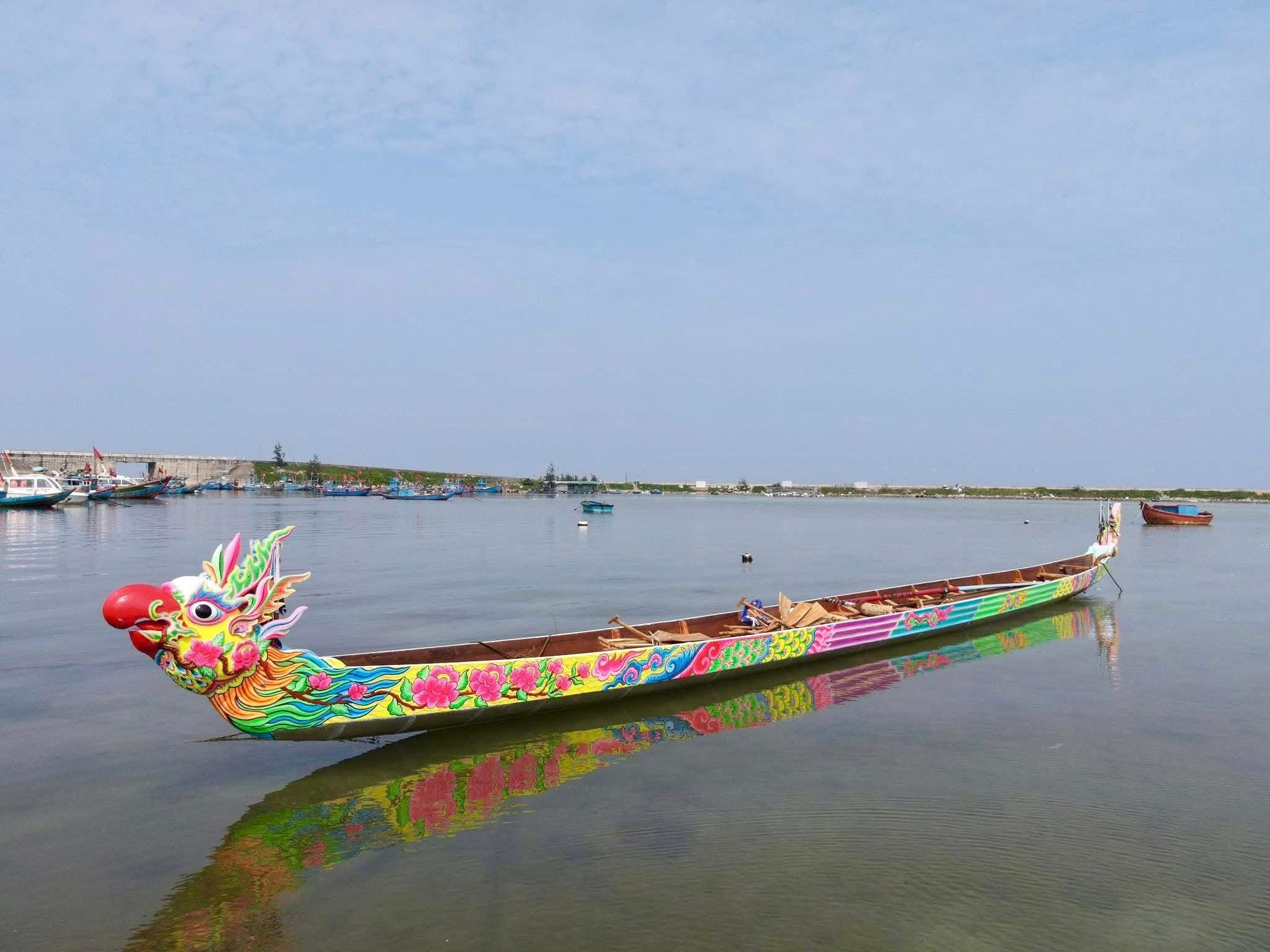Each communal house prepares four racing boats, named after the Four Sacred Creatures: Long – Lân – Quy – Phụng. These boats are long, slender, and lightweight, with intricately carved prows and sterns resembling mythical creatures gliding over the sea. When not in use, they are stored and worshipped in the communal houses, only launched into the water during the festival season.