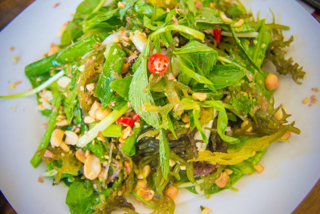 For dipping sauces, diners can choose between lime pepper salt, ground chili salt, or the most popular option — green chili salt. Its vibrant green color, fragrant heat, and tangy-salty taste pair exceptionally well with the smoky grilled octopus, creating a flavor that keeps visitors coming back for more.
