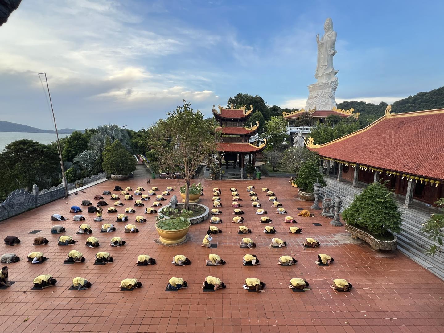 Ho Quoc Pagoda hosts a wide range of spiritual activities year-round. Visitors frequently come to offer incense and prayers for peace, good fortune and protection for their families. Short meditation retreats, Dharma talks and special practices such as the Ksitigarbha Ceremony or the youth-friendly “Back to the Temple” retreats are held regularly. The annual memorial ceremony for the founder of the Truc Lam Sect, King Tran Nhan Tong, takes place from the 30th day of the tenth lunar month to the first day of the eleventh month, attracting thousands of followers. Free vegetarian meals are served from 11:00 to 17:00 daily, with donations accepted on a voluntary basis.