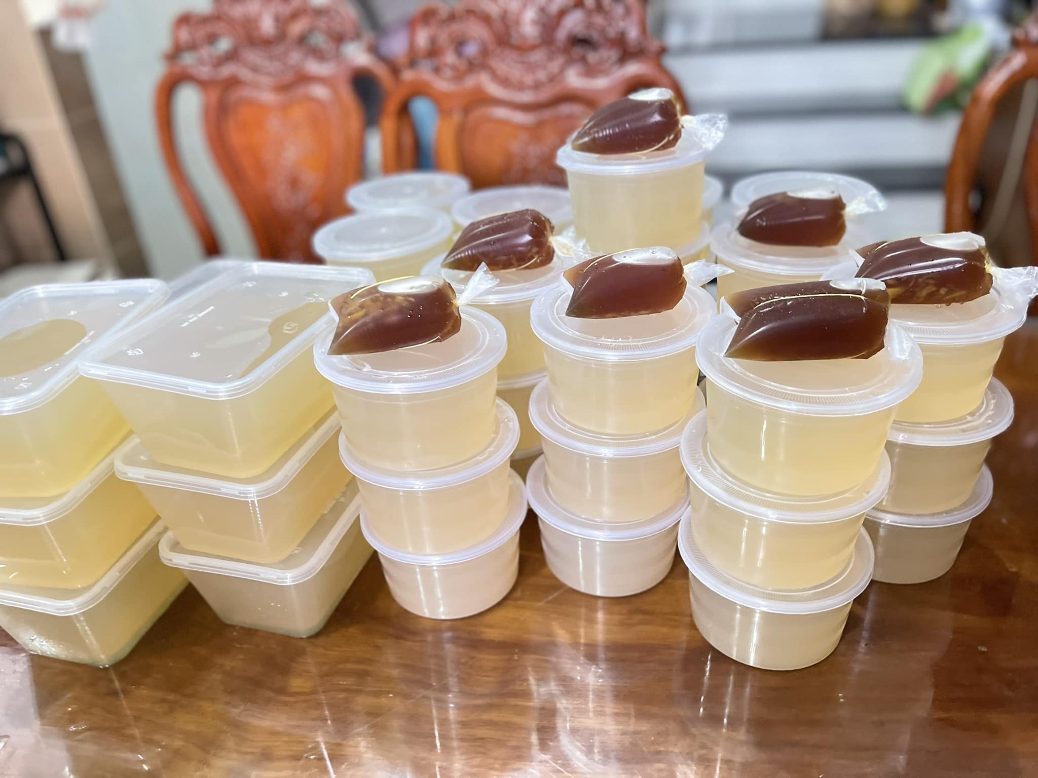 Dried seaweed is soaked overnight, rinsed again, and then simmered in fresh water. As it dissolves completely, the liquid is poured into bowls or molds and left to cool and set into a delicate jelly known as xu xoa.