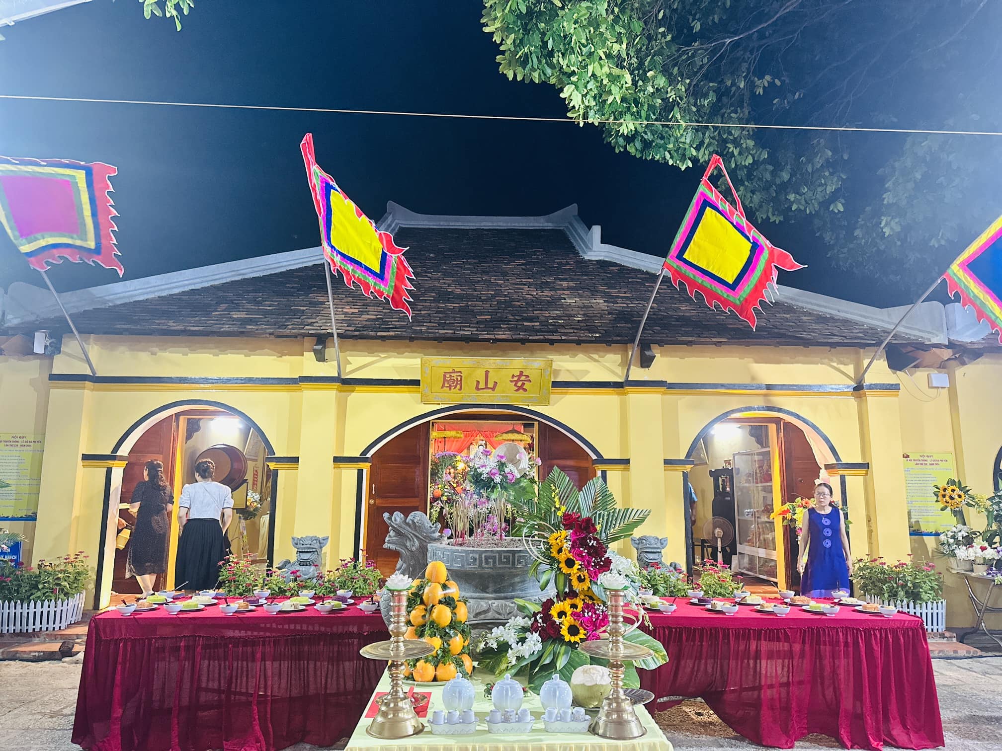 Moved by her chastity and loyalty, the villagers of An Hải built An Sơn Shrine to honor her. Despite the many vicissitudes of history, the shrine has remained in its original location and retains its traditional appearance. Its yin–yang tiled roof rests beneath a canopy of shade trees, surrounded by lush greenery. On full-moon days, locals and seafarers visit the shrine to offer incense and pray for peace and good fortune.