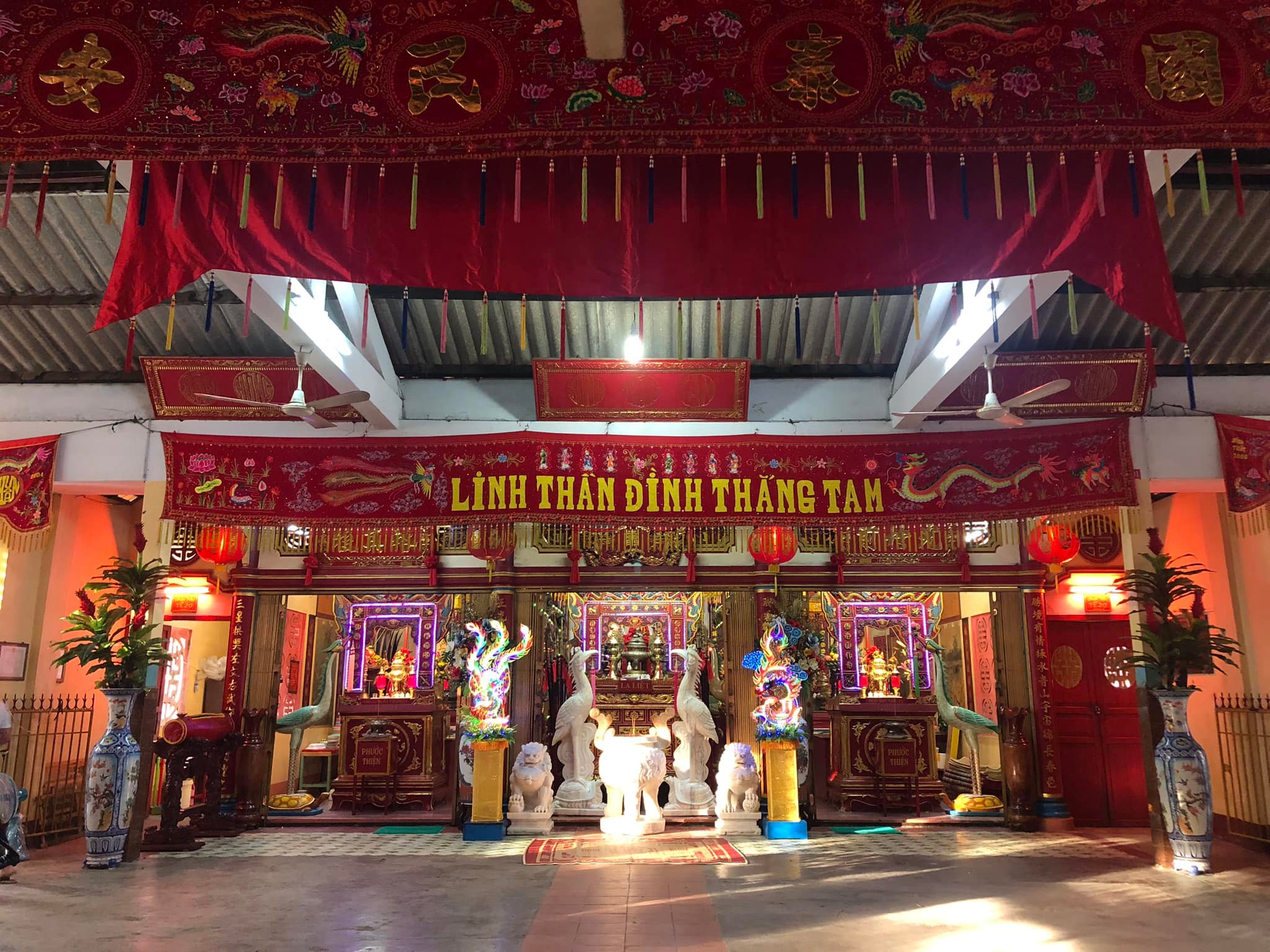 The deities honored at Thang Tam Communal House are also worshiped at three sacred sites: Lang Ong Nam Hai (Whale Temple), Thang Tam Communal House, and the Five Elements Goddess Temple (Mieu Ngu Hanh). These spirits were believed to have protected the land, aided the people, and safeguarded fishermen and villagers, becoming divine guardians of the community.