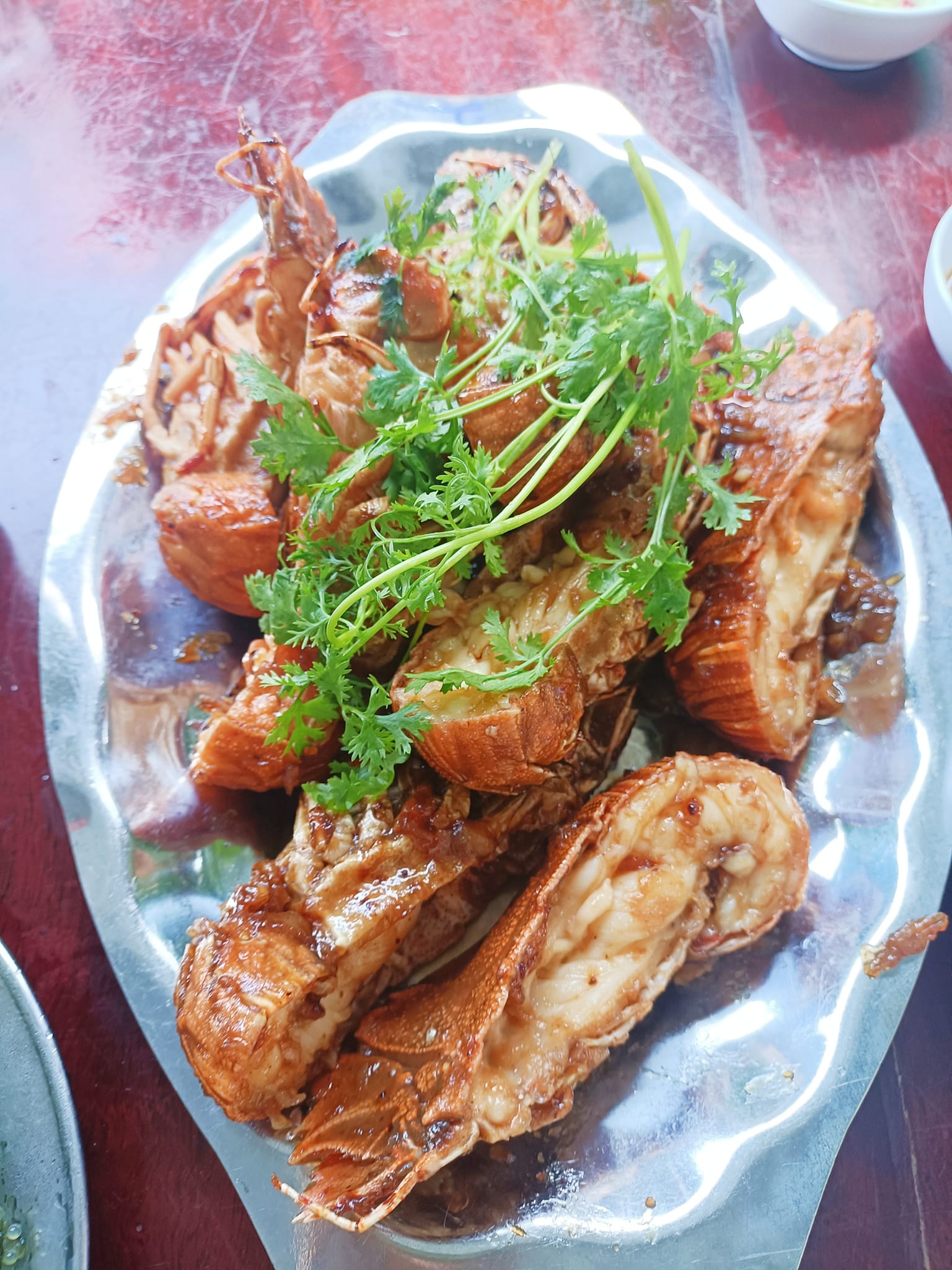 The most celebrated dish is grilled slipper lobster. Place the fresh lobster over glowing charcoal, wait until it releases a mouthwatering aroma, then crack open the shell. Inside is the gleaming white, firm meat—best enjoyed with lime-salt-pepper dipping sauce.