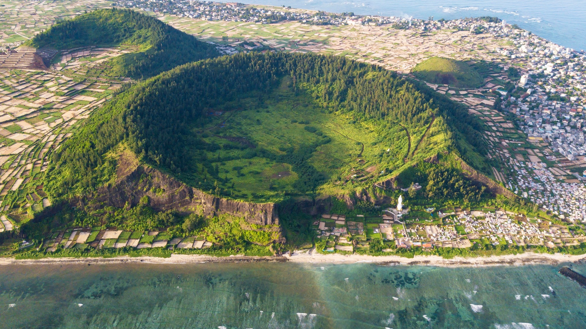 Khác với núi Thới Lới chủ yếu là đá nham thạch trơ trọi, núi Giếng Tiền lại khoác lên mình màu xanh tươi tốt quanh năm. Ngọn núi lửa cổ này cao khoảng 86 m, sở hữu miệng núi hình lòng chảo rộng hàng trăm mét – một cấu trúc địa chất hiếm gặp. Từ trên cao nhìn xuống, ai cũng dễ choáng ngợp trước hình dáng độc đáo và sự hài hòa giữa miệng núi, thảm thực vật và không gian biển đảo bao quanh.