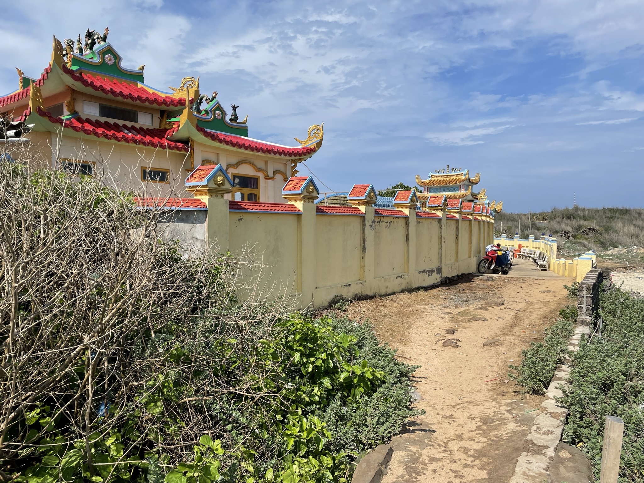 - 15h00: Tham quan đỉnh núi Cao Cát nơi có ngôi Chùa Linh Sơn, trên đỉnh núi chúng ta sẽ phóng tầm mắt nhìn bao quát cả đảo. Phía sau chùa có những tảng đá lớn trải qua hàng triệu năm với gió biển bào mòn tạo ra ra nhiều hình thù cực kỳ đẹp mắt. Người ta ví nơi đây như là đầu rồng và Mũi Doi Thầy là đuôi rồng nên giờ đây xã này được đặt tên là Long Hải (tức rồng biển).