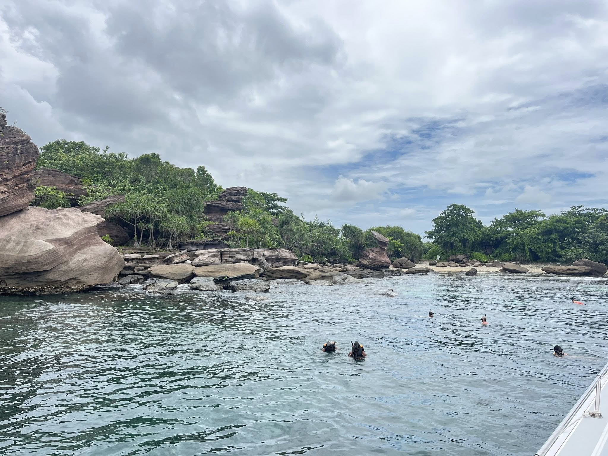 Nước biển ở Hòn Xưởng trong đến mức du khách có thể thấy rõ những dải san hô kéo dài dưới đáy, với đủ loại màu sắc rực rỡ. Đây là một trong những nơi hiếm hoi bạn có thể vừa bơi, vừa lặn, vừa “mắt thấy tay sờ” vào những rạn san hô sống: chạm tay vào nhum biển, bắt ghẹ đá, hay quan sát những đàn cá nhỏ bơi lội ngay bên cạnh.