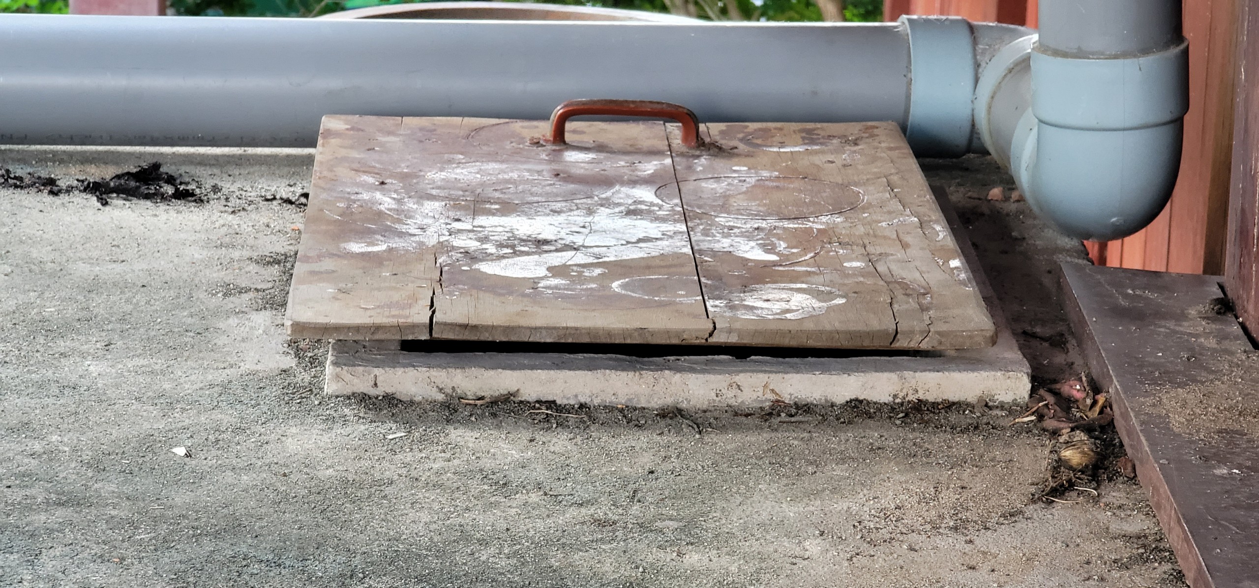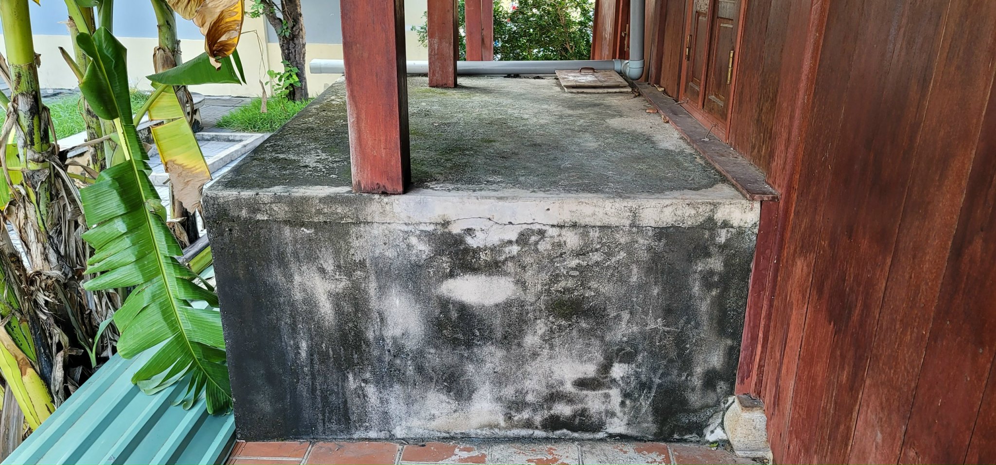 Căn hầm được xây dựng vào năm 1967, người trực tiếp xây dựng căn hầm là đồng chí Bảy Thép. Dưới hình thức là bể chứa nước gồm hai phần, một nửa làm hầm không chứa nước, nửa còn lại là bể nước mưa có máng xối. Khi có động chỉ cần đẩy vách bước xuống hầm, rồi đóng kín cửa, bên ngoài, có tủ gỗ nhỏ đựng chén đĩa để ngụy trang. Trong lúc đang tiến hành xây bể thì tên cảnh sát nằm vùng đến, nhìn đống cát gạch ngổn ngang hắn hỏi: “Dạo này bà làm ăn phát đạt quá ta, định xây nhà lầu cho Việt cộng ở chắc”. “Đâu có thưa ông, nhà bán được mấy túm nhãn mua ít xi măng về bảo thằng cháu ở dưới quê lên xây cái bể đựng nước. Quanh năm không có bể cứ phải gánh nước cực quá”. Bọn địch nhiều lần nghi ngờ chúng lục soát nhưng không tài nào phát hiện được. Có lần chúng cho quân lính đến lung sục rất kỹ nhà má Tám Nhung nhưng trước đó trên mặt bể nước má đã kịp phơi cá từ buổi sớm. Khi đến gần bể nước thấy mùi cá hôi tanh nên chúng đã vội lánh xa.