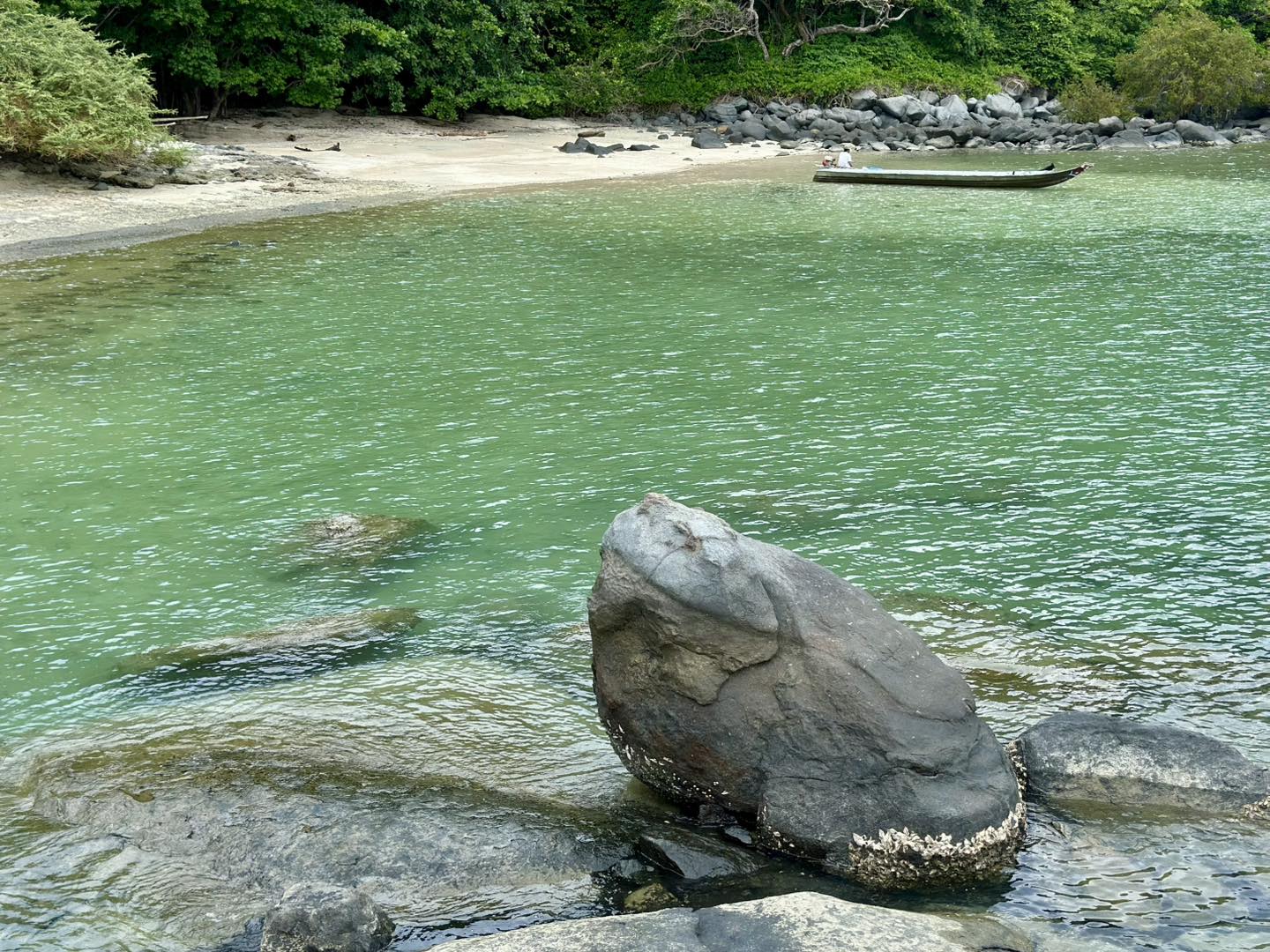 Ngồi dưới những tán bàng cổ thụ trăm năm, đôi chân vùi trong cát, trước mặt là màu xanh ngắt của biển và phía xa là rặng núi trùng điệp – Côn Đảo khiến người ta thấy bình yên đến tận cùng, như thể mọi ồn ào của thế giới đều dừng lại ngoài khơi xa.