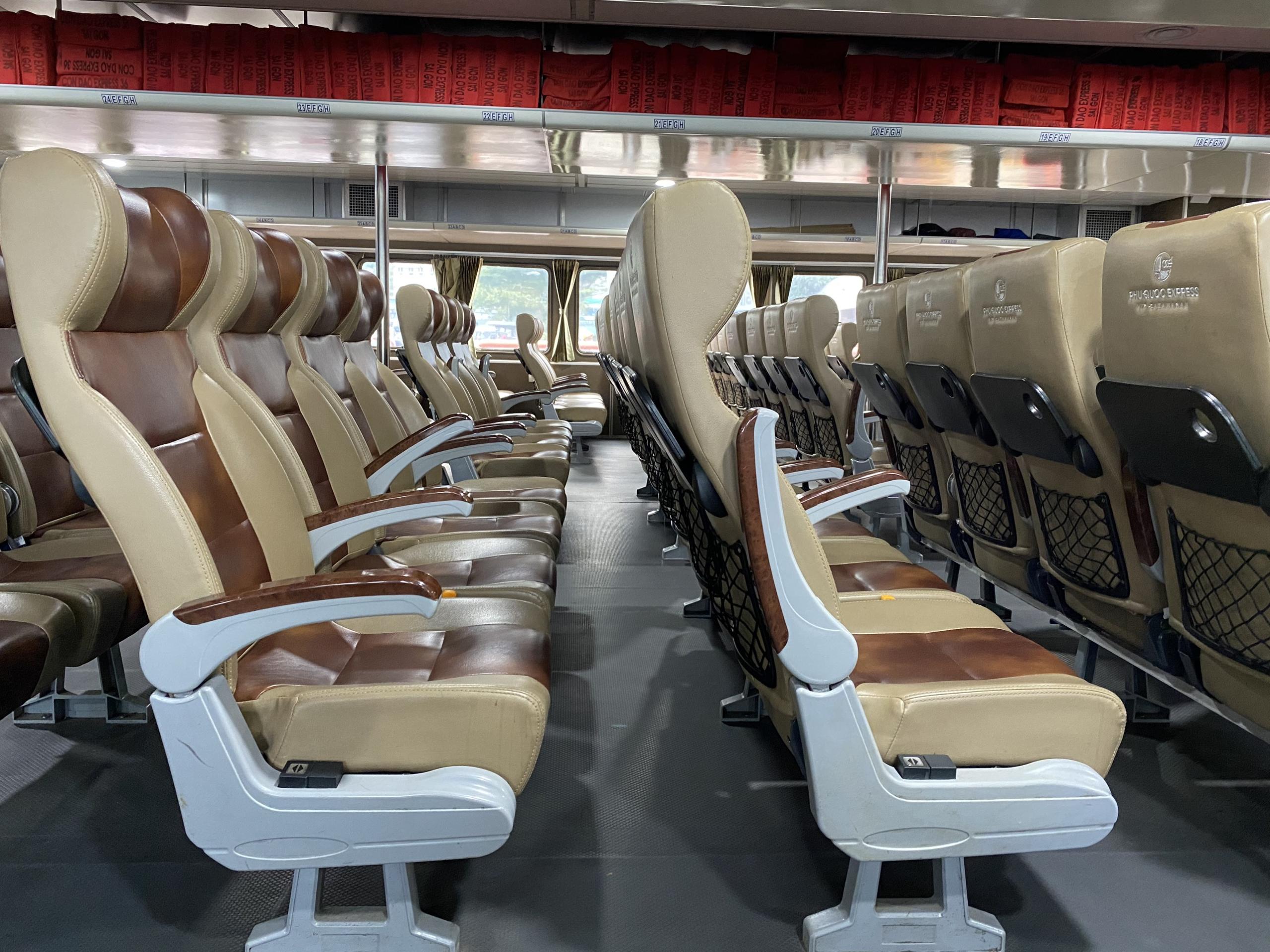 Tàu cao tốc Côn Đảo Express 36 có 02 tầng bao gồm 598 ghế: tầng trên có 30 ghế VIP và 158 ghế ECO, tầng dưới đều được trang bị 410 ghế ECO. Tất cả các ghế đều ngồi rất thoải mái và phù hợp với mọi đối tượng, ghế có thể ngã ra sau khoảng 120 độ.