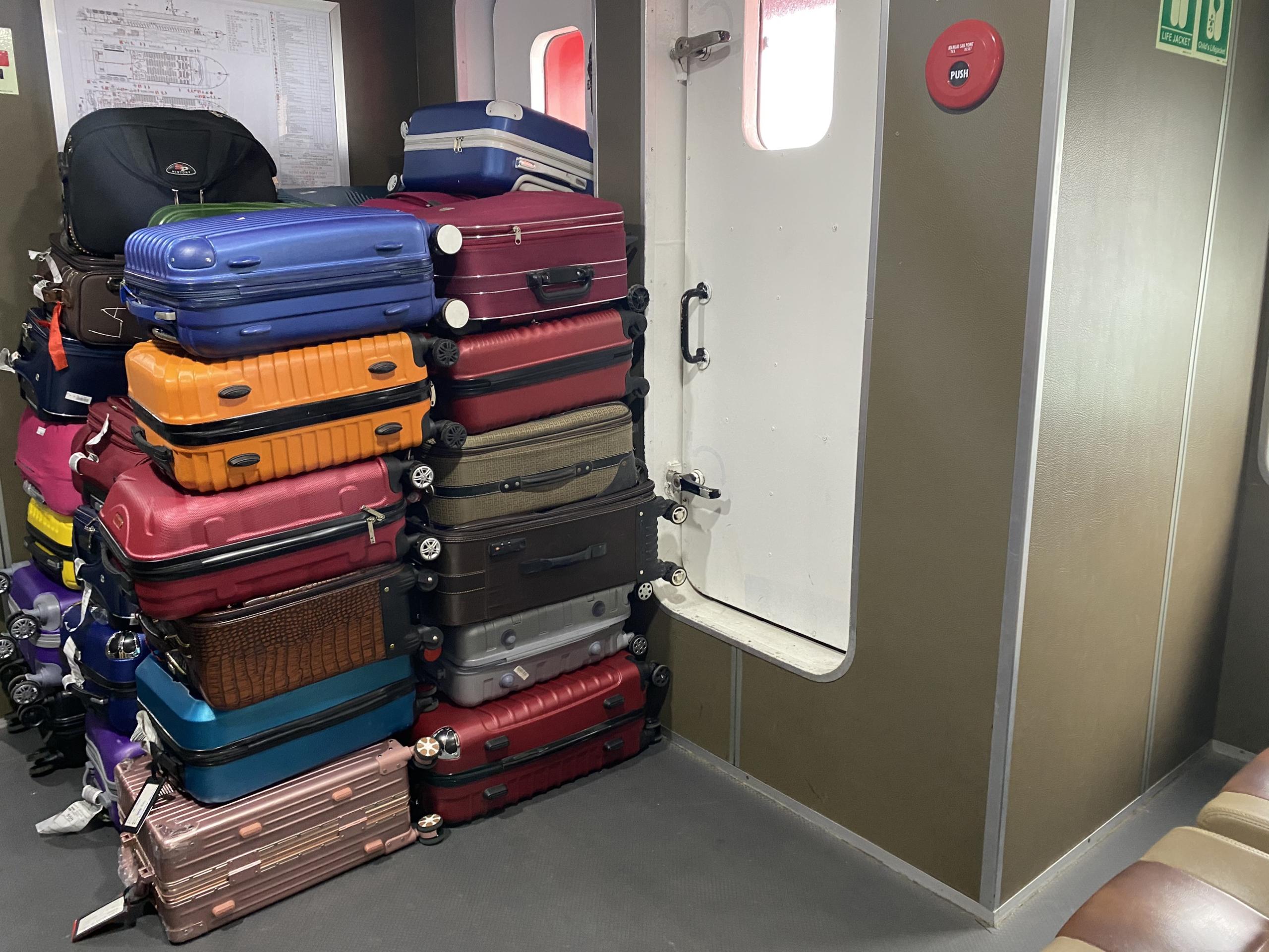 Lưu ý: tất cả các hành lý, valy không đựng các vật dụng đắt tiền, hành khách ngay sau khi check in lên tàu sắp xếp ngay phía trên đầu góc tàu. Đối với các loại hàng hóa có mùi thì liên hệ nhân viên bốc xếp để đưa lên trên boong tàu và không nên mang vào trong khoang hành khách vì tàu sẽ đóng kín các cửa và mở máy lạnh trong suốt thời gian khởi hành.