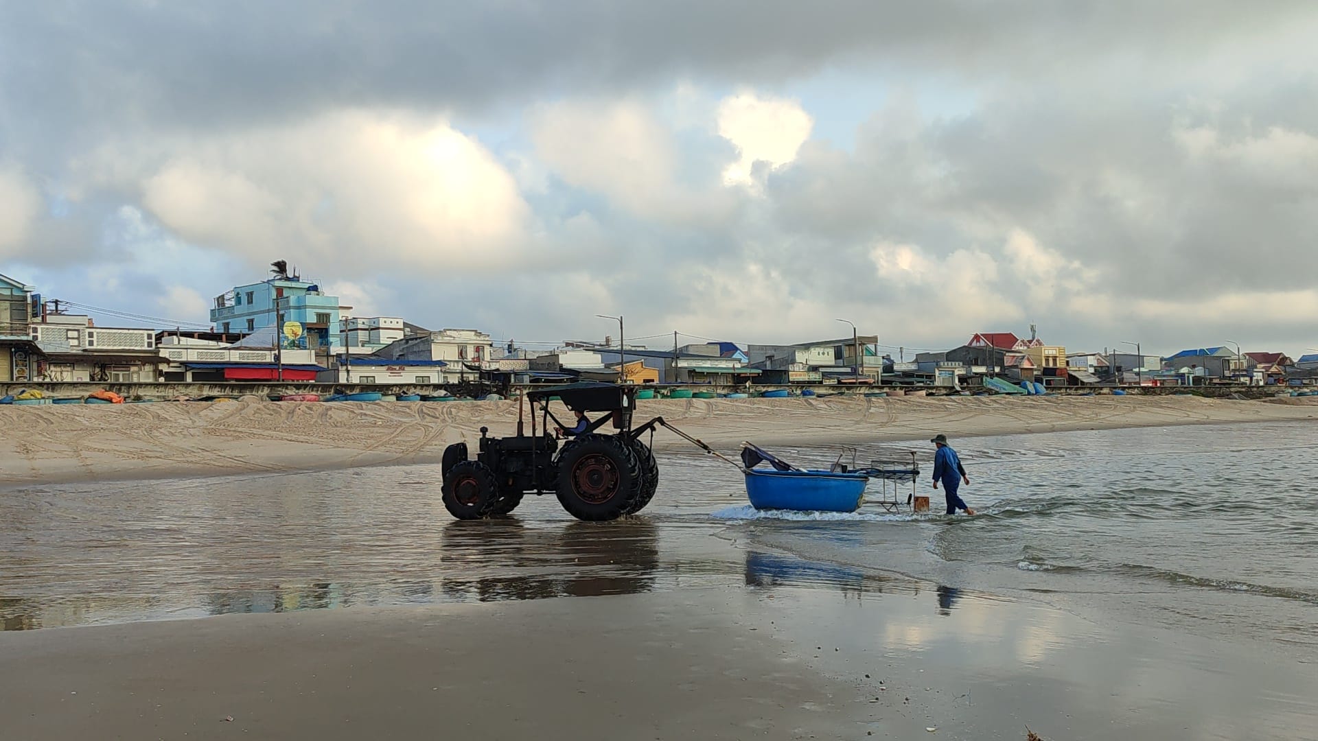 Giữa nhịp sống biển khơi rì rào ngày đêm, làng chài Long Hải hiện lên bình dị và chân thành như chính con người nơi đây. Khi mặt trời còn chưa kịp ló dạng, bãi biển đã rộn ràng tiếng máy tàu, tiếng sóng vỗ và những bước chân quen thuộc của ngư dân bắt đầu một ngày mưu sinh mới. Những mẻ lưới ướt sương, đôi tay rám nắng và ánh mắt hướng ra khơi xa tạo nên bức tranh đời thường nhưng đầy sức sống.
