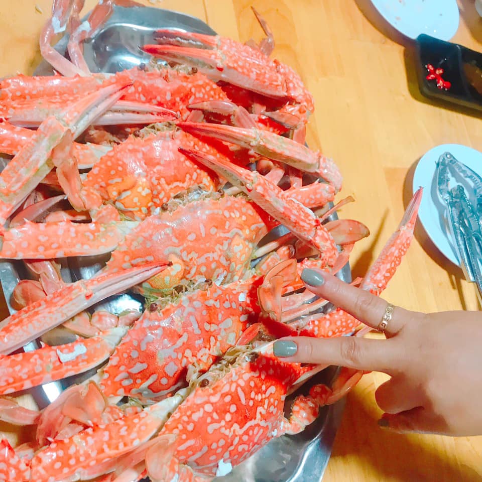 Một đặc sản khác rất nên thử là cua mặt trăng. Loài cua này sống tại các bãi san hô ở Côn Đảo, mai có nhiều hình tròn đỏ đậm và thịt cua ngọt nhất vào mùa trăng nên được ngư dân ở đây gọi là cua mặt trăng. Món này thường được chế biến khá đơn giản nhưng thịt được đánh giá ngon không thua gì cua huỳnh đế.