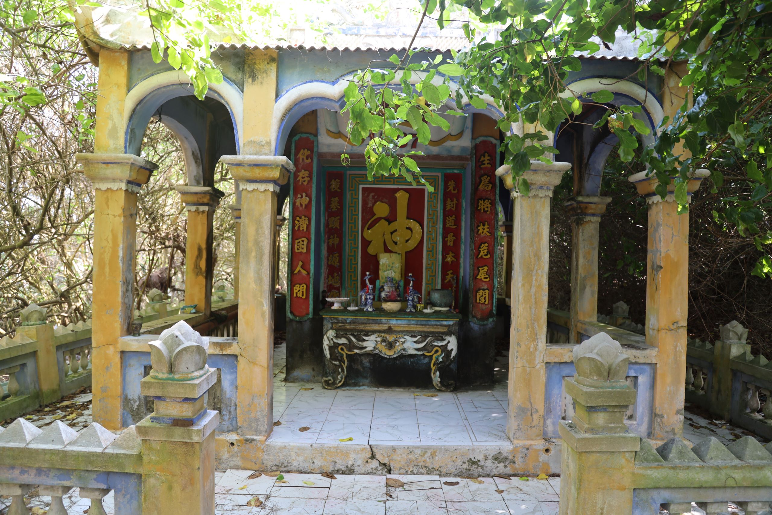 Trung tâm nội thất Chính điện đặt 3 khám thờ, khám giữa bằng gỗ có chữ “Thần”, thờ bài vị Trấn Bắc, Chúa Ngọc Thiên Y Ana và ảnh thờ Trần Hưng Đạo; hai khám hai bên tả hữu thờ Tiền Hiền và Hậu Hiền. Khám được trang trí các họa tiết lưỡng long tranh châu, tứ linh, chim phượng và câu đối. Bên phải Chính điện, lùi về phía sau xây một lăng thờ thần Nam Hải, bên trong lưu giữ 72 bộ xương cá voi trôi dạt vào đảo Hòn Tranh từ trước đến nay.