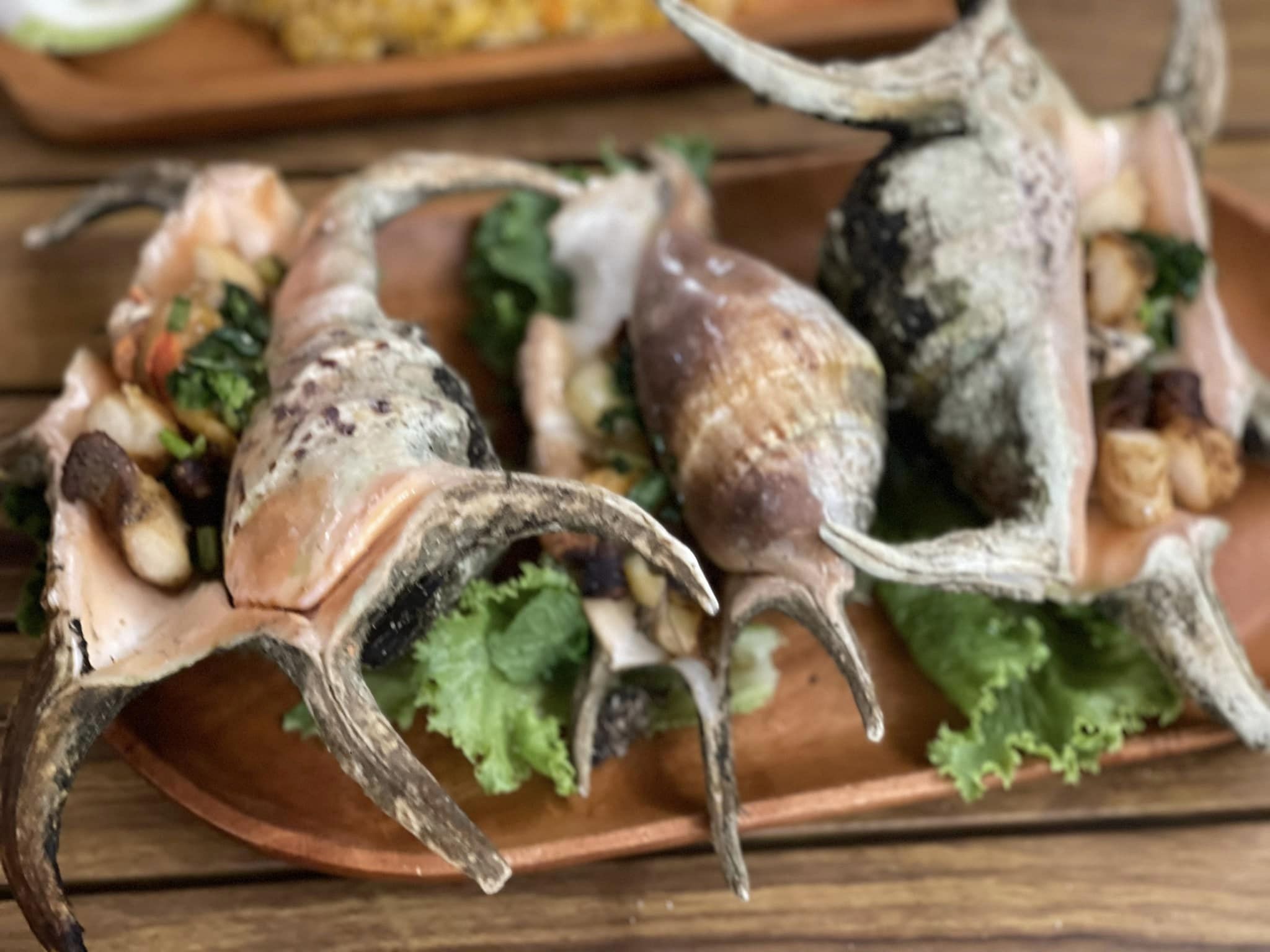 Mùa hè, nước biển xanh trong, ngư dân ra biển lặn bắt ốc. Nếu ốc to, mỗi ký chừng mười đến mười lăm con. Có thể chế biến ốc thành nhiều món ngon, trong đó khoái khẩu nhất là ốc hấp sả hoặc nướng muối ớt.