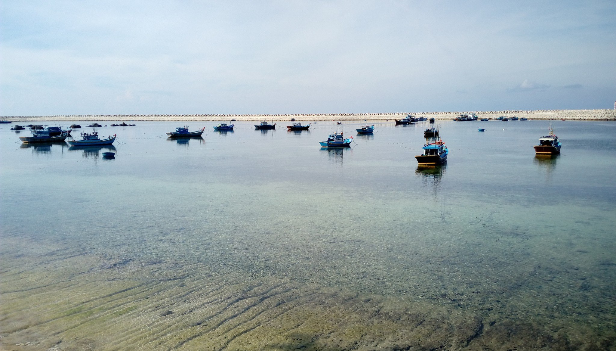 Vịnh Triều Dương có chiều dài bờ biển khoảng 2km, thuộc xã Tam Thanh. Nơi đây bãi biển bằng phẳng, cắt trắng, nước biển trong xanh và những hàng dương xanh ngát. Đến đây, du khách được khám phá và cùng trải nghiệm cuộc sống một ngày làm ngư dân với người dân trên đảo. Du khách sẽ cùng giăng lưới, thả câu, cùng kéo lưới và thu hoạch những con cá, con mực tươi ngon, còn giãy trên lòng bàn tay.