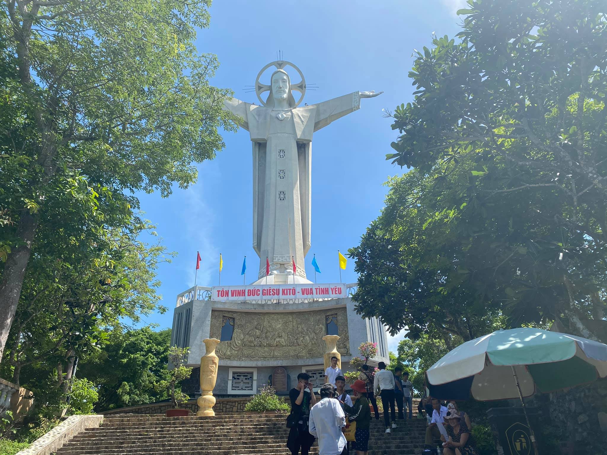 Không cần phải lo lắng về vấn đề sức khỏe, vì dọc đường lên núi có khá nhiều điểm nghỉ chân mát mẻ và thông thoáng có thể ngắm một phần của biển cả. Nếu bạn lần đâu tiên đến với địa điểm này thì chắc chắn sẽ rất bất ngờ khi được chiêm ngưỡng một bức tượng Chúa cao lớn, uy nghiêm với nét mặt nhân từ đang dang rộng cánh tay hướng mặt ra biển. Du khách tháo giày dép để bên ngoài tượng và bắt đầu đi vào bên trong lòng Tượng. Trong lòng Tượng có cầu thang xoán ốc sẽ đưa du khách lên đến cổ Tượng và đi ra hai cánh tay Tượng.